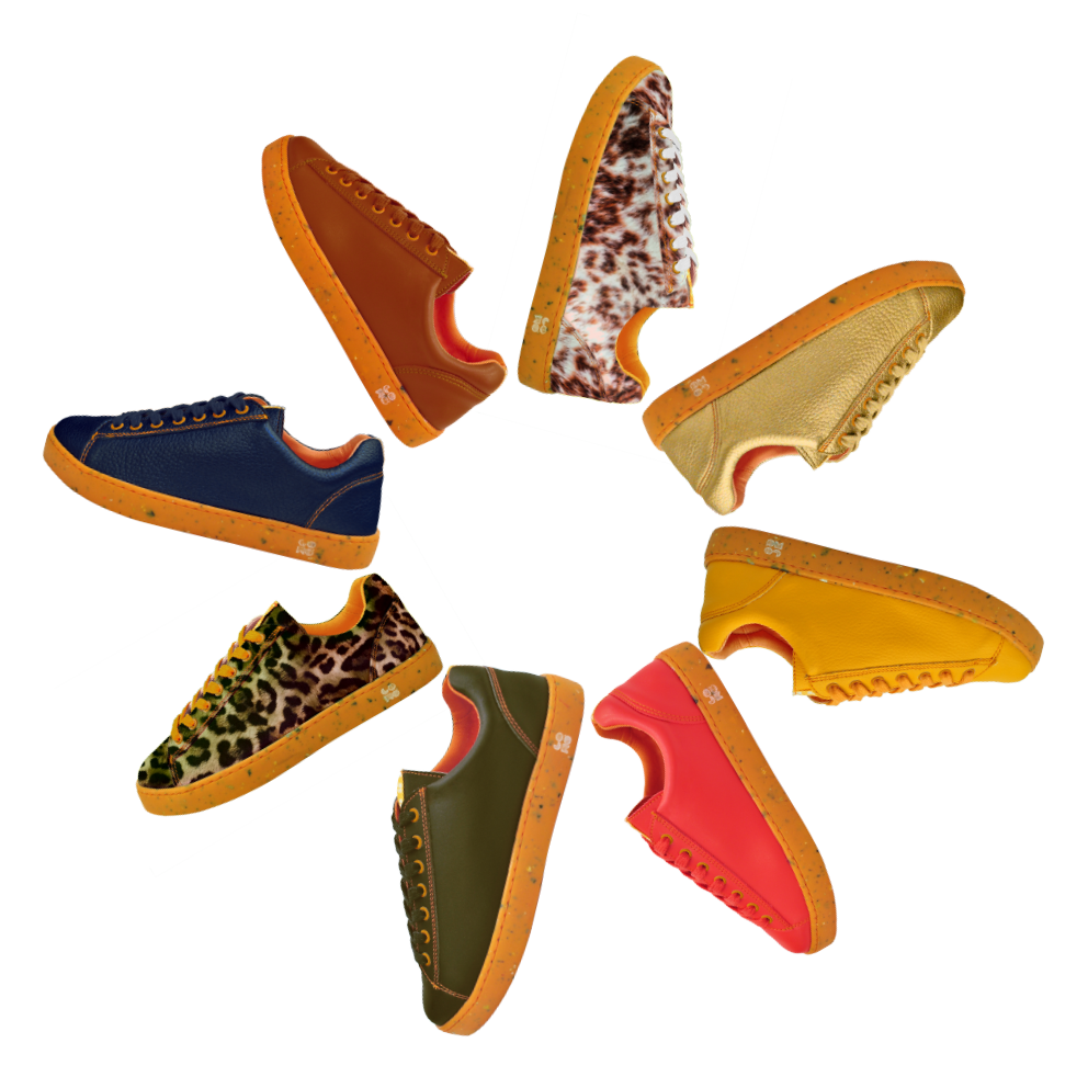 Depois, a diversidade de materiais no corpo do sapato, tornam cada cor uma descoberta: há materiais que têm na sua composição laranja e cato, ou milho, ou madeira, ou poliamida reciclada, etc, um leque variado de cores e de materiais que têm como prioridade a qualidade, a respirabilidade, o conforto, a durabilidade, a resistência e a sustentabilidade da sua produção.